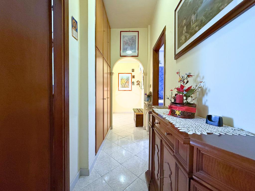 Entrando nell'immobile troverai un piccolo soggiorno ad accoglierti servito da un balcone con affaccio luminoso. Dirigendoti nella parte sinistra accederai al disimpegno con armadio a muro, alla cucina abitabile, all'ampia camera da letto e al bagno anch'esso spazioso. L'immobile si presenta in discreto stato con infissi in alluminio doppio vetro bianchi.